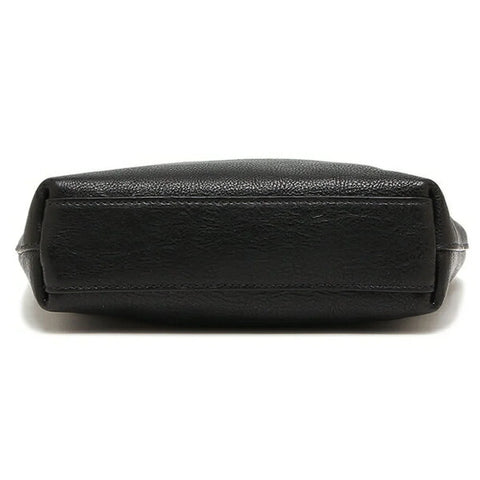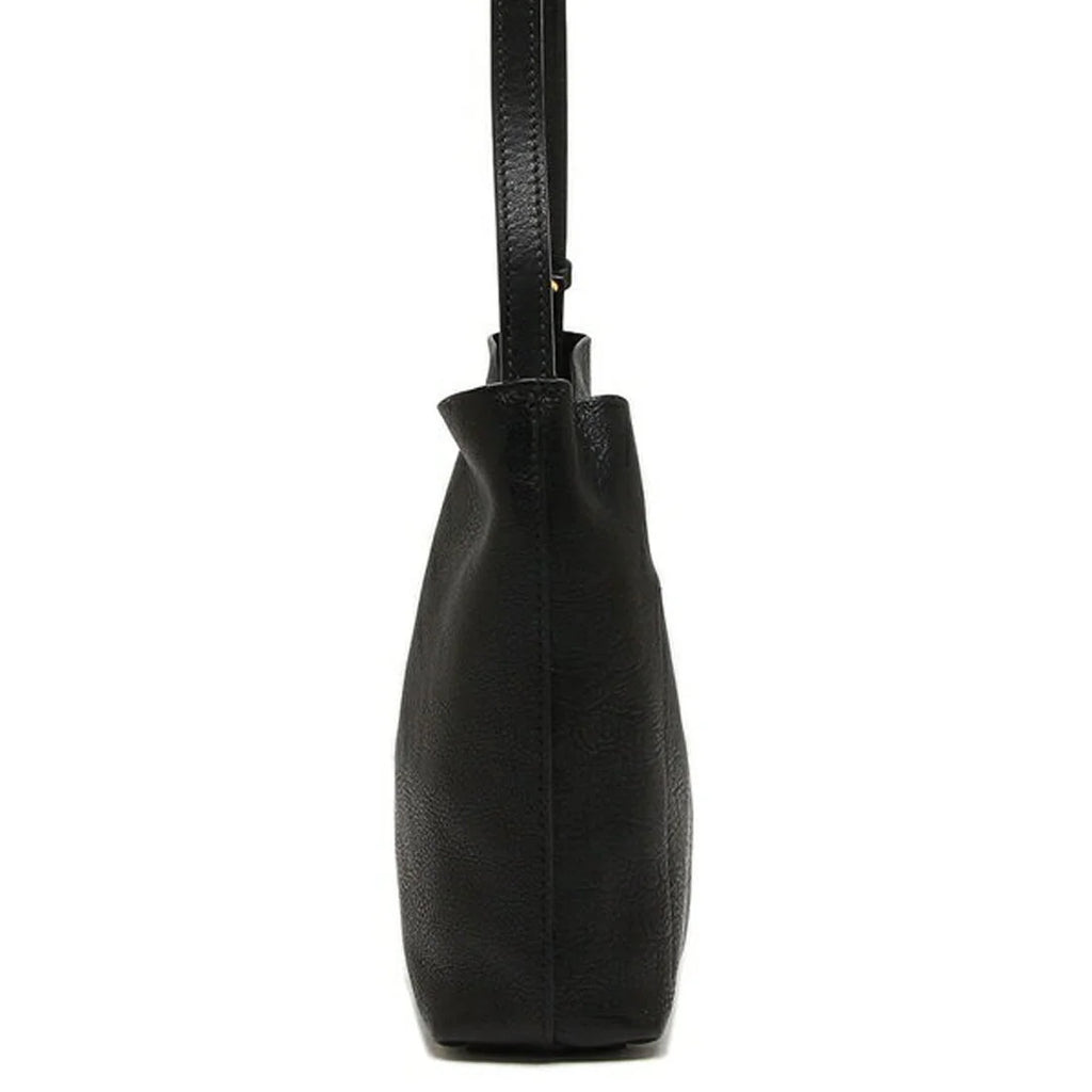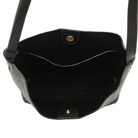 The Il Bisonte BCR337 PO0001 Le Laudi Small Crossbody Bag is a sleek and structured accessory, handcrafted in Italy from premium vegetable-tanned cowhide leather in timeless black. Its softly curved silhouette and discreetly embossed Il Bisonte logo on the front offer a perfect blend of elegance and minimalism. Secured with a snap-button closure, the unlined interior features one open pocket—ideal for storing daily essentials. Measuring approximately 24 cm (top width), 17.5 cm (bottom width), 16 cm (height), and 6 cm (depth), and weighing around 230g, this bag is lightweight and practical. The adjustable leather strap (approx. 77–118 cm) allows for both shoulder and crossbody wear. Comes with an Il Bisonte protective dust bag and ages beautifully over time with a unique patina.