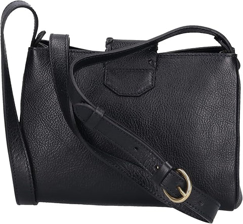 The Il Bisonte BCR341 Crossbody Bag is a compact and elegant women’s accessory, handcrafted in Italy from premium vegetable-tanned cowhide leather in a classic Nero (black) finish. Featuring a softly structured silhouette, this minimalist bag is ideal for daily use, combining practicality with timeless style. The interior includes a divider and one open pocket, perfect for organizing small essentials. Secured with a snap or fold-over closure, it measures approximately 7.5 × 17.5 × 14 cm and weighs around 370g. The adjustable leather strap offers versatile carrying options, while the natural leather will develop a beautiful patina over time, showcasing Il Bisonte’s commitment to authentic Italian craftsmanship.