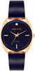 Case: Rose gold-tone steel case, round, 34mm; Dial: Navy-blue mother-of-pearl dial; Bezel: Navy enamel bezel; Index: Diamond at 12; Band: Rose gold-tone & navy acetate bangle bracelet; Closure: Jewelry clasp; Water Resistance: 100 ft (30m)